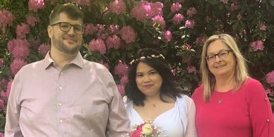 Judy officiated our elopement in her amazing garden. She was very thoughtful and open to our ideas when creating our one of a kind ceremony. She took the time to make sure everything we wanted was touched on and included our family in the ceremony.